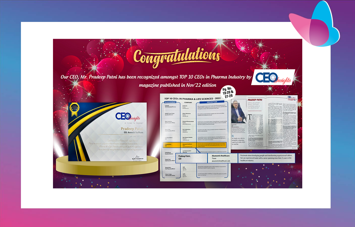 Among Top 10 CEOs in Pharma industry